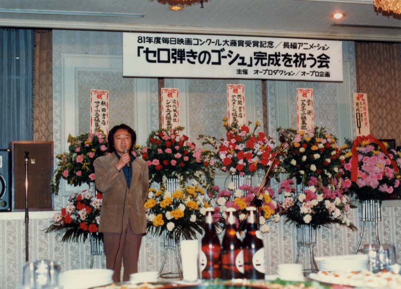 1982年に「セロ弾きのゴーシュ」の初公開にいたる。製作期間に五年あまりかけた訳だが、当時の製作メンバーの苦労を察していただきたい。潤沢な資金がある訳でもなく、まさに自分達の給料を削って作っていたのである。実作業したスタッフはもちろんだが、絵描きとして自主作品のチャンスに実作業でなく裏に回って支えたメンバーをもっと評価していただきたい。 |